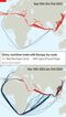 2021年に紅海の入り口近くでコンテナ船1隻が座礁してスエズ運河が6日間通行不能になった時、中国商務省は、欧州に向かう中国製品の60%がスエズ運河を経由すると推計していた。