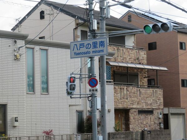 しばらく歩くと「八戸の里南」の交差点があるのでそこを右折する。