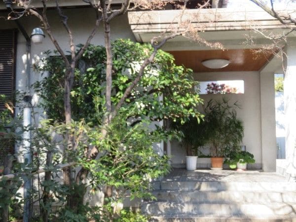 右手前方にこんもりした木立が見え始めたら、もう1、2分で司馬遼太郎記念館に着く。門を入ると鬱蒼とした立ち木の先に平屋建ての自宅が現れる。