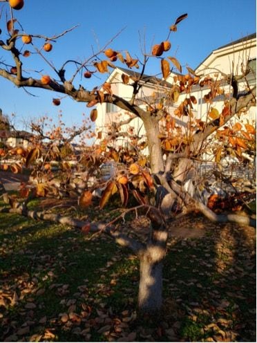 都内では、少し郊外に行くとかなり高く成長した柿の木があり、そのてっぺんの辺りに実がなっているのが放置されているのをよく見かける。
