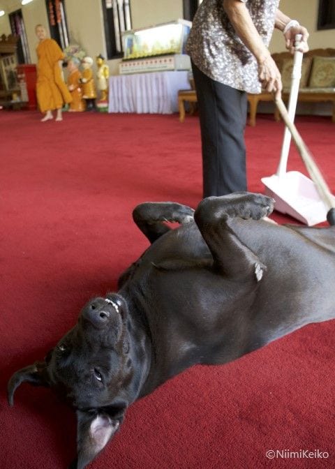 タイのチェンマイ旧市街には、多くの由緒あるお寺が点在しています。お堂の中へ入ると、犬が我が物顔でカーペットに体をこすりつけていました。抜けた毛の1本1本を、お年寄りが掃除していました。
