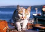 桟橋の先の方で日向ぼっこをしていた猫が、岸に戻ってきました。日が傾いて、もう家に帰る時間でしょうか。