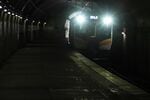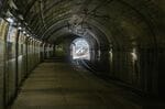 体験坑道駅から続く青函トンネルの坑道。観光用にライトアップされている