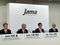 記者会見する日本自動車工業会の片山正則会長(右から2人目)ら(写真:桃田健史)