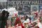 テロが起きたモスクワ郊外のクロッカス・シティホールで献花する人々(写真:Sputnik/共同通信イメージズ)