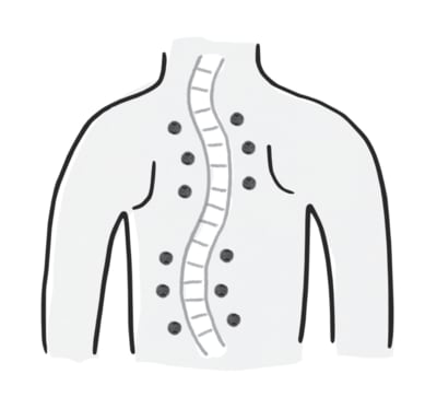 とくに弯曲の強い起立筋の上に並べて、背骨を挟み込みます。