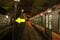 下り列車が土合に到着した。改札口に向かう階段は、黄矢印の先にある。