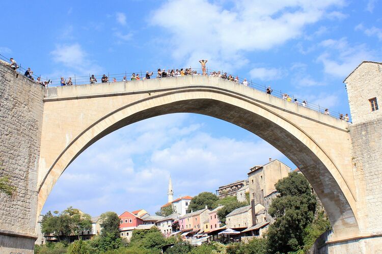 スタリ・モストから飛び込もうとしている若者 写真=フォトライブラリー