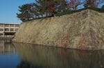 福井城本丸の石垣。堅固に築かれた石垣にも福井地震によるひずみが生じている