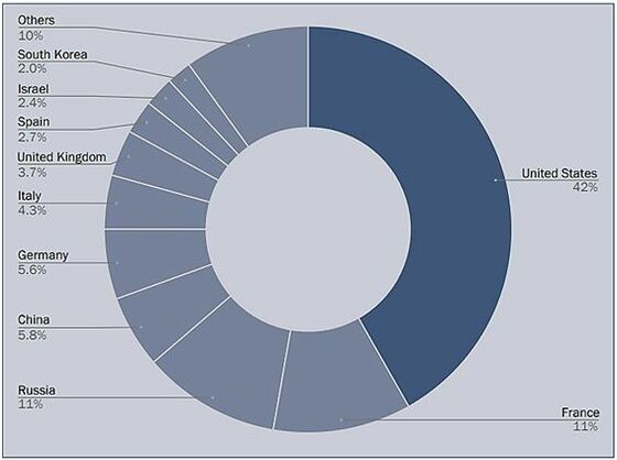 他方、米国は2014~18年から2019~23年にかけて武器輸出を17%増加させ、世界第1位(全体の42%)の武器輸出国を維持している。