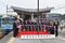 近江鉄道の上下分離方式への移行を祝う出発式には、滋賀県や沿線市町の首長のほか斉藤鉄夫国土交通相(中央左)も参加した=2024年04月06日、滋賀県米原市(写真:時事)拡大画像表示