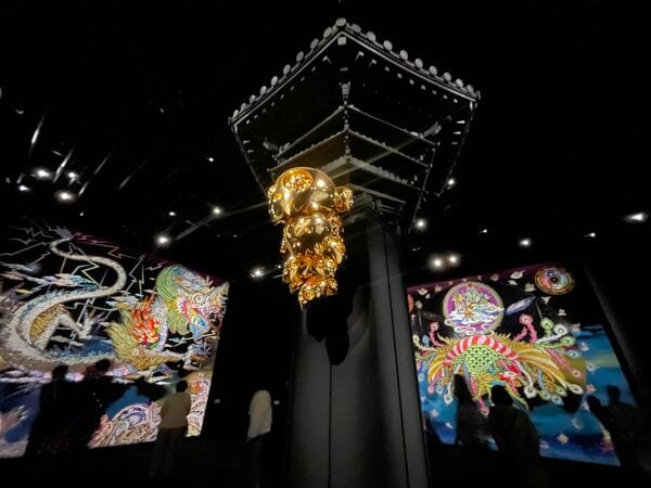 《阿像》《吽像》(2014)中央ロビーでの展示風景。©2024 Takashi Murakami/Kaikai Kiki Co., Ltd. All Rights Reserved.