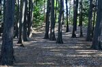 城内は木立が茂っている。画面奥に土塁が見えるのがわかるだろうか