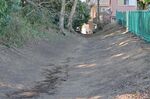 東側の空堀(左手が城内)。堀が浅く感じられるが、長い年月をへて埋没が進んでいるためだ