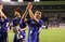 サッカーU23アジアカップ準決勝でイラクに勝利し8大会連続12度目の五輪出場を決め、写真に納まる選手たち=4月29日、ドーハ(写真:共同通信社)