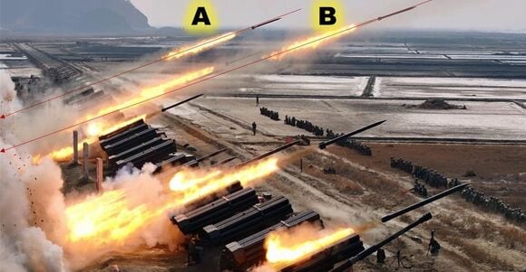 だが、発射器がないものがある。ロケット弾のAとBである。これも、発射しているロケットを多く見せるための合成である。