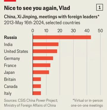 5月のイカサマ選挙で5期目を勝ち取ったプーチン大統領が最初の訪問国に選んだのは中国だった。今回の訪中と2023年の会談との間には一種の対称性が見られる。