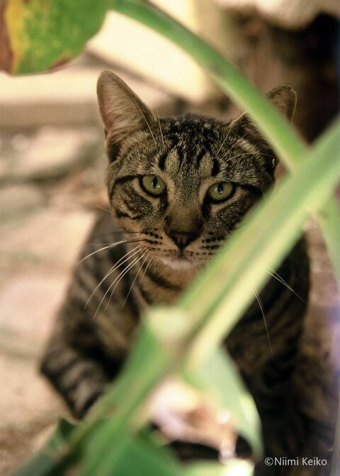 珍しい柄のステキな猫がいました。「三毛に決めたけど、やっぱりシマシマ模様が可愛いかな? でも、スポッテッド(斑点)にしてやろう」と、優柔不断な神様が悩んで模様が決まった、そんな経緯を想像してしまいました。