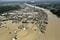 2020年7月の豪雨で氾濫した球磨川。人吉市上空より(写真:共同通信社)