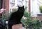 歩いていくと、また黒猫がいました。煉瓦の色に似合っています。同じ家で飼われている2匹ですが血縁関係はありません。