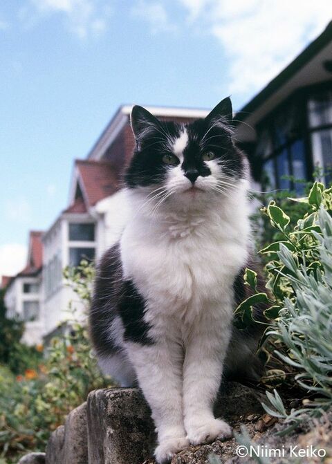 タキシード模様でないけれど、白と黒の割合が半々のこの猫は小柄なメスで、可愛いポーズをとってくれました。