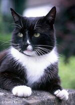 短毛の真っ白な猫に会いました。郊外の古いお屋敷に住んでいて、イタチなどの小動物が侵入しないか、塀の上から目を光らせています。