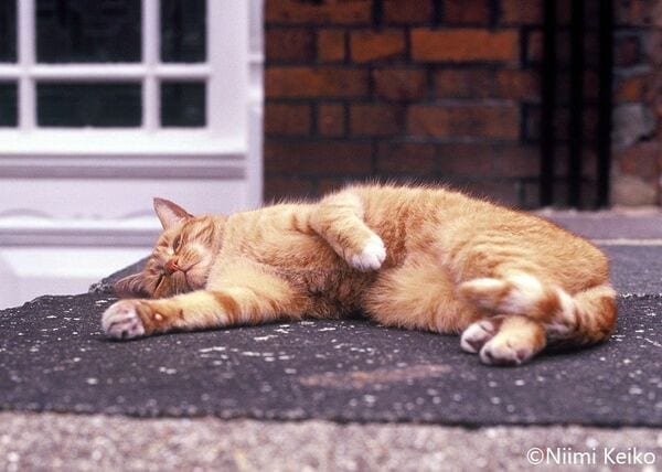 この茶トラ猫もかまってほしい系でした。気を引きたいのか、ゴロンゴロンと向きを変えながら、こちらの様子をうかがっていました。