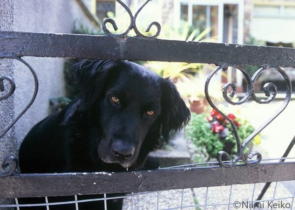 暗い日影の中に黒い犬。気配を消していたので最初は気づきませんでした。名前はシャドウ。飼い主さんによると、黒い体が影のようだからではなく、「シャドウはね、いつも影のようにわたしにピッタリ寄り添っているからなのよ」。