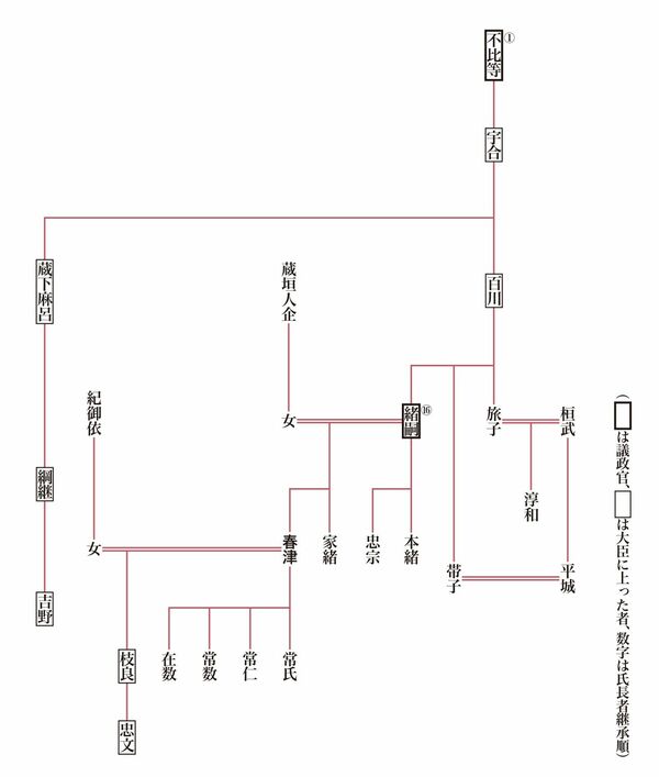 緒嗣については、すでに語っておいた。桓武(かんむ)天皇の権臣であった式家の百川(ももかわ)の嫡男として、また淳和(じゅんな)生母である旅子(たびこ)の異母兄として、左大臣に上った。