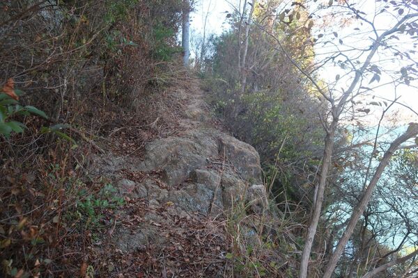 船をおりたら島を周回する舗装道路を半周し、以前海水浴場だったところで道を外れます。砂浜のはずれまで行くと、山をのぼっていく階段があります。