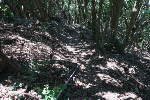 森の中の下り道は、傾斜は急ですが、まあまあはっきりしています。1カ所だけ、右か左か迷うところがありますが。