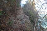 だれかが(だいぶ前に)木につないでくれたロープがないとのぼりくだりが無理な場所もあります。次の写真はくだったあとに見上げたものです。帰りはここをのぼらなければなりません。