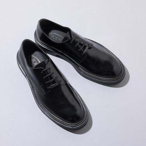 この外羽根式のプレーントゥは、2023年の秋冬期にリリースされ、広く人気を得たことから今季も継続される新定番的なモデルだ。イタリアンブランドらしく「軽快でエレガント」を得意とするだけに、本格的なプレーントゥも実に軽量。厚手ソールは軽く柔軟なEVA素材のため、終日の歩行でも疲れを感じにくい仕様。2重のライニングにはソフトパッドを仕込み、優しいホールド性も実現している。非常にシックな概観だが、シューレースにはロゴ入りメタルを加えており、さり気なくブランドを主張するディテールも兼備する。