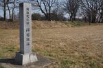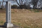 標準域で撮ってみる。石碑と土塁の距離感が詰まって写るため、この方が土塁が大きく見える