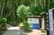 登り口には案内板とトイレがある。画面奥の竹林の中が城跡だ