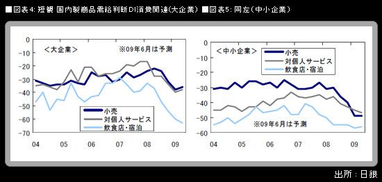 輸出依存である日本経済の牽引役がフリーフォールに近い悪化となっている上に、消費関連業種のDIは国内におけるデフレ圧力の一層の強まりを示しており、長期金利低下予想を補強する材料となる。