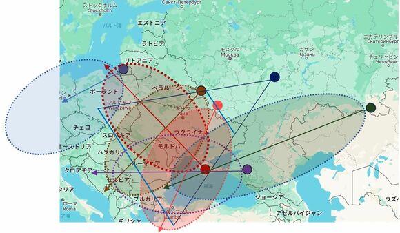図 ロシア軍警戒監視レーダーの位置と主な警戒監視範囲想像