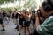 水鉄砲で観光客を襲撃するデモの参加者(写真:ロイター/アフロ)