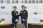 維新との連携のアピールに積極的にだった斎藤元彦知事。昨年6月、甲子園球場で行われたプロ野球セ・パ交流戦の阪神-オリックス戦の始球式に、大阪府の吉村洋文知事(左)と並んで登場した(写真:共同通信社)拡大画像表示
