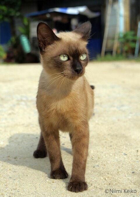 生まれて4カ月の猫。ポイント(色が濃い)部分以外の色がやや濃いめです。大きくなったらもっと色が濃くなり、全身チョコレート色のステキな猫になるような気がします。