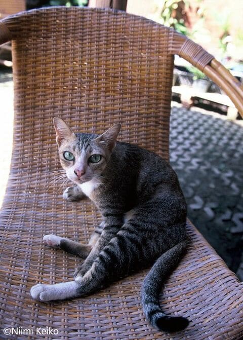 涼しげな籐の椅子の上。風が通り抜けたら気持ちがいいでしょう。