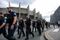 モンパルナス駅のホームに集まる憲兵隊ら。高速鉄道TGVの路線網に大規模な破壊行為があった=26日、パリ(写真:共同通信社)