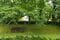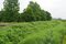 村松城本丸南側の堀。発掘調査に基づいて整備されたものだが、ごく浅いことがわかる。画面左手奥の土塁の向こう側に資料館が建っている