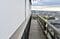 天守最上階の廻り縁と高欄。高欄は腰くらいの高さしかなく、廻り縁の床は外側に傾いている