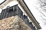 直下から天守を見上げる。壁の色や窓のレイアウト、窓の作りの違いなど、細かい配慮がなされていることがわかる