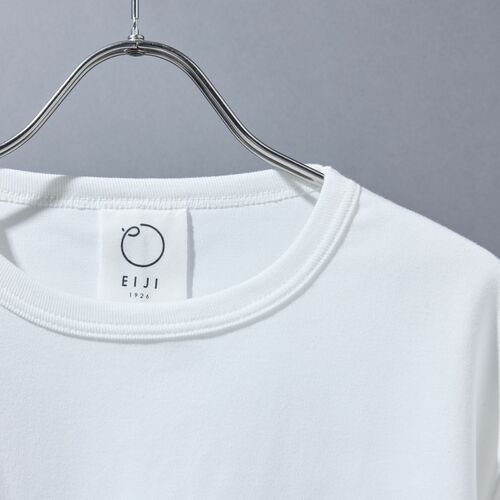 素材となる海島綿種アルティメイト ピマは、柔軟さはもちろんヌメリ感や吸い付くような肌ざわり、品格ある光沢感をもつ最上級コットン。その逸品素材を通常の約3倍の重みとなる10.5オンス生地で採用しており、Tシャツでありながらそれ一枚での着用でも、重厚感とエレガントなドレープにより上品な装いが叶うスペック。