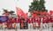 開会式でボートで入場する台湾チーム(写真:ロイター/アフロ)