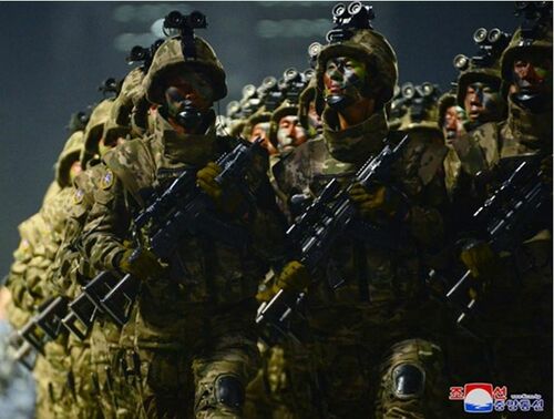 写真7 北朝鮮軍軍団のパレード(2021年1月)と個人装備品