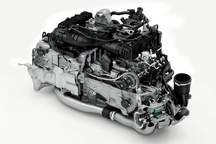 また先代はツインターボだったが、新型ではシングルターボ化することで軽量化を実現。さらにタービンの軸部分に電気モーターが組み込んだ電動ターボチャージャーを採用しており、いわゆるターボラグがなく瞬時にブースト圧を高めることが可能となっている。この電気モーターはジェネレーターとしても機能し最大11kW(15PS)のパワーを発生する。