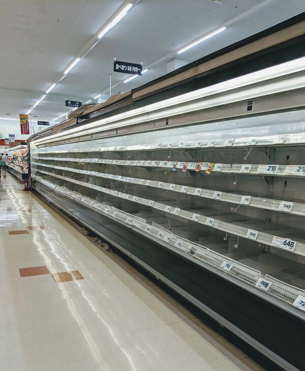 2019年9月の台風直後の大網白里市内のスーパー。冷凍食品の棚は空っぽだ(筆者撮影)